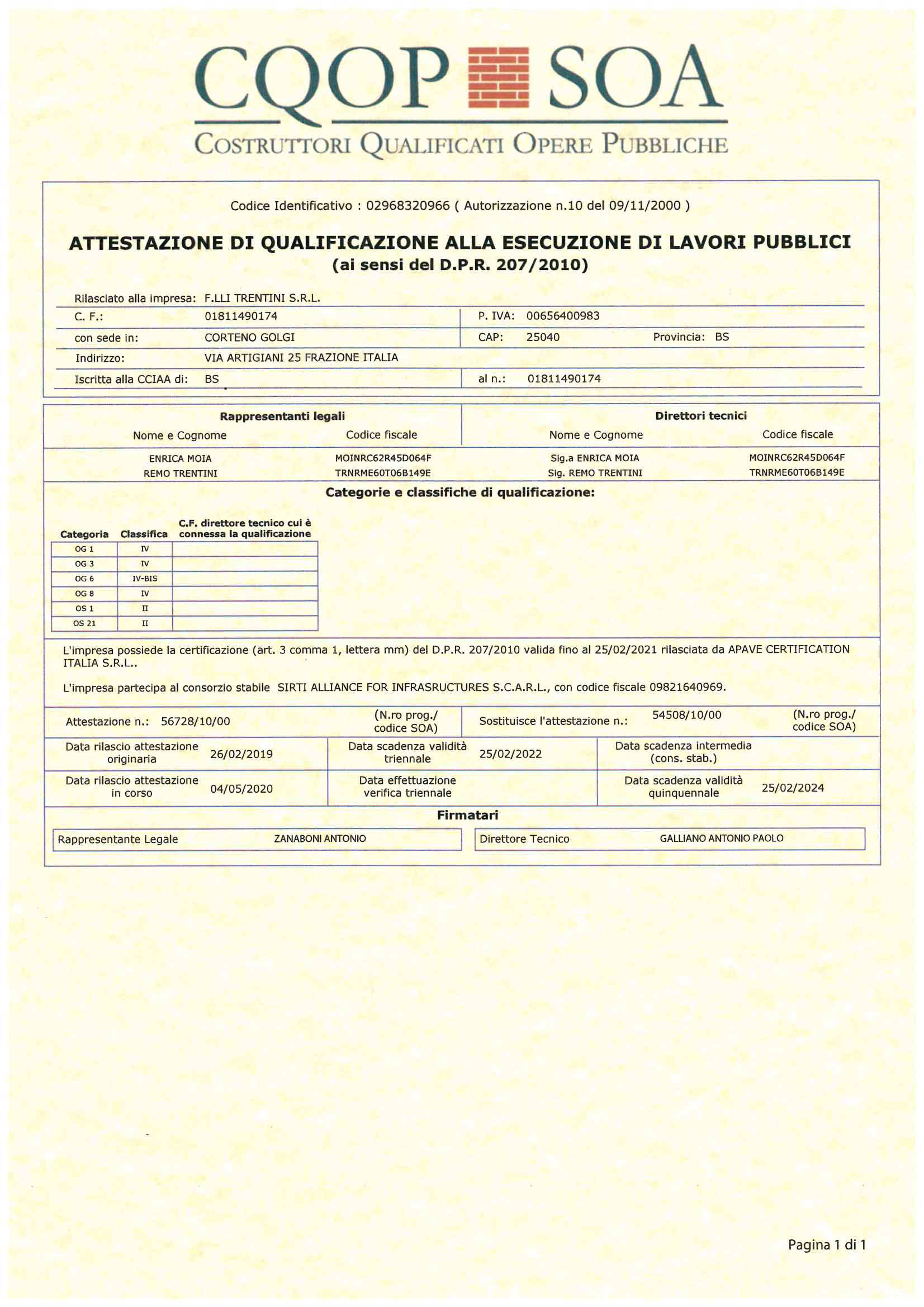 Attestazione di qualificazione alla esecuzione di lavori pubblici